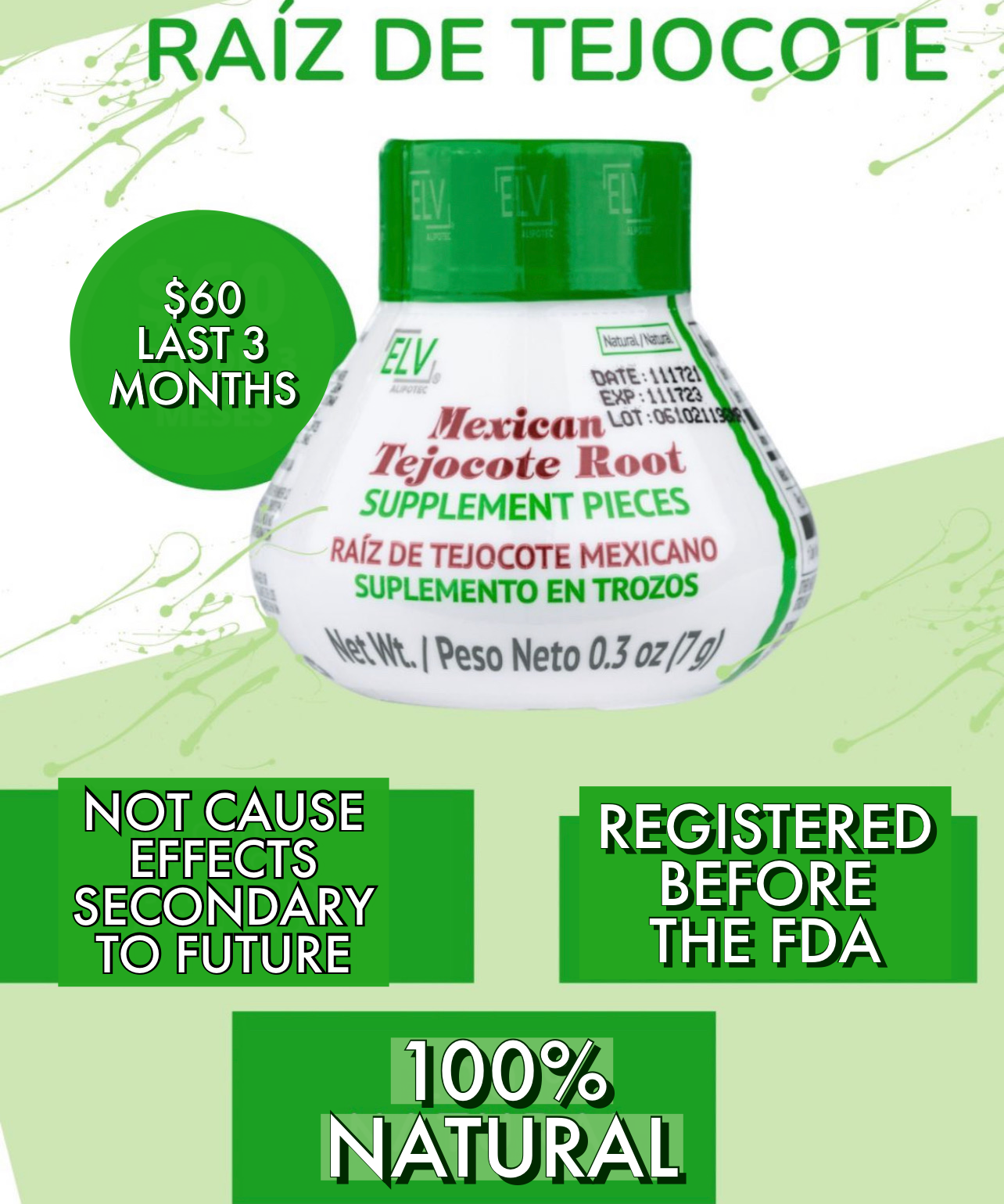Tejocote Root Cleanse- Original Design - 1 Bottle (3 Month Treatment) - Most Popular, All-Natural Cleanse Supplement in Mexico